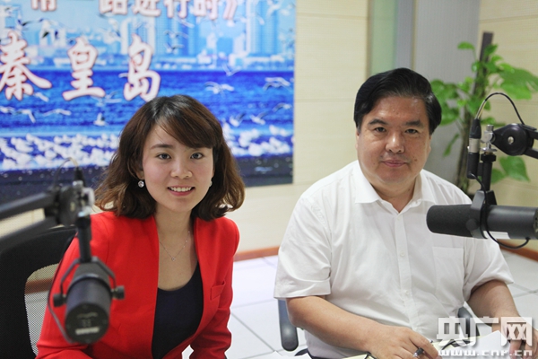 秦皇島市委副書記、市長張瑞書與中央臺主持人鄒穎婧在直播間