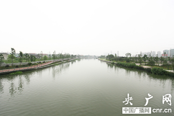 余姚市姚江干流一段已完工的防洪整治及綠化工程。在岸上,還根據當時征集的市民要求配套有自行車騎行帶。