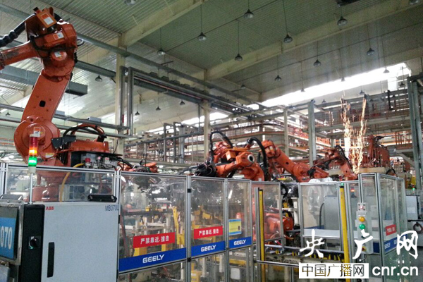 今天上午,吉利汽車的沖壓、焊裝車間內,機器人正在全速沖壓部件、焊接車身,不時還有火花冒起,一派熱火朝天的景象。